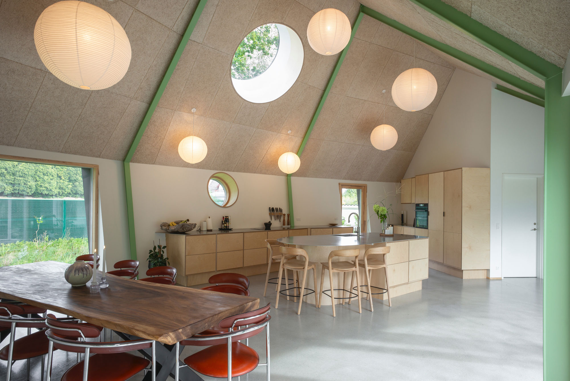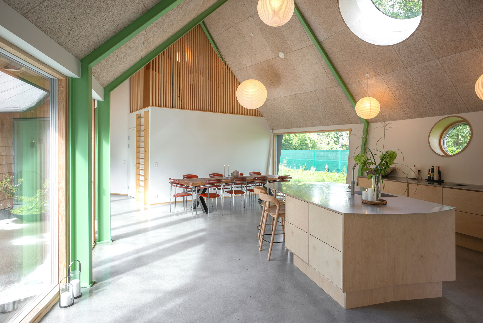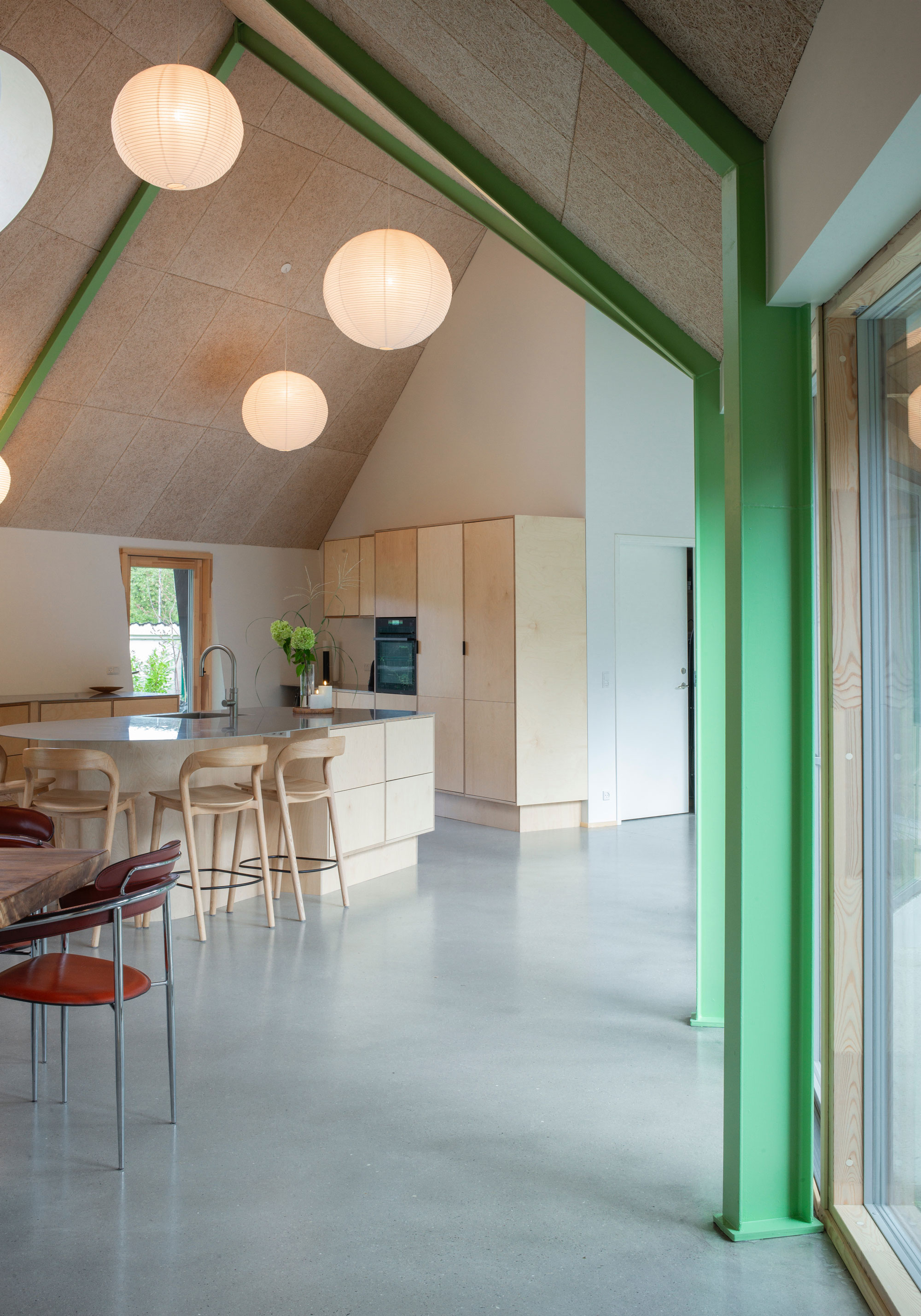 Built with upcycled materials and wood fiber insulation, the home prioritizes a healthy indoor climate and a low carbon footprint.