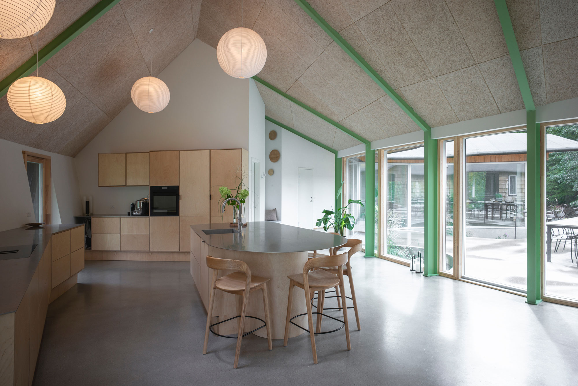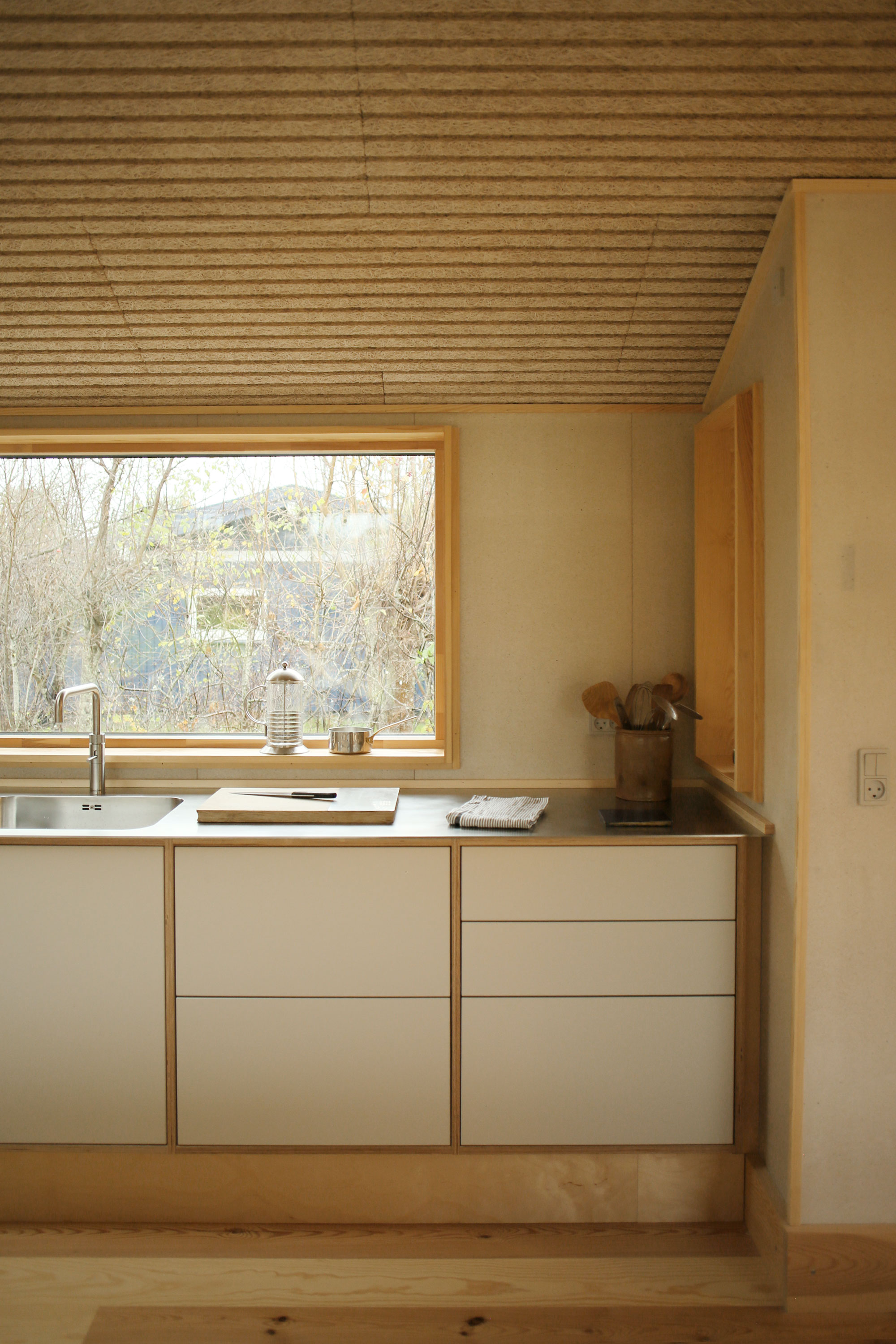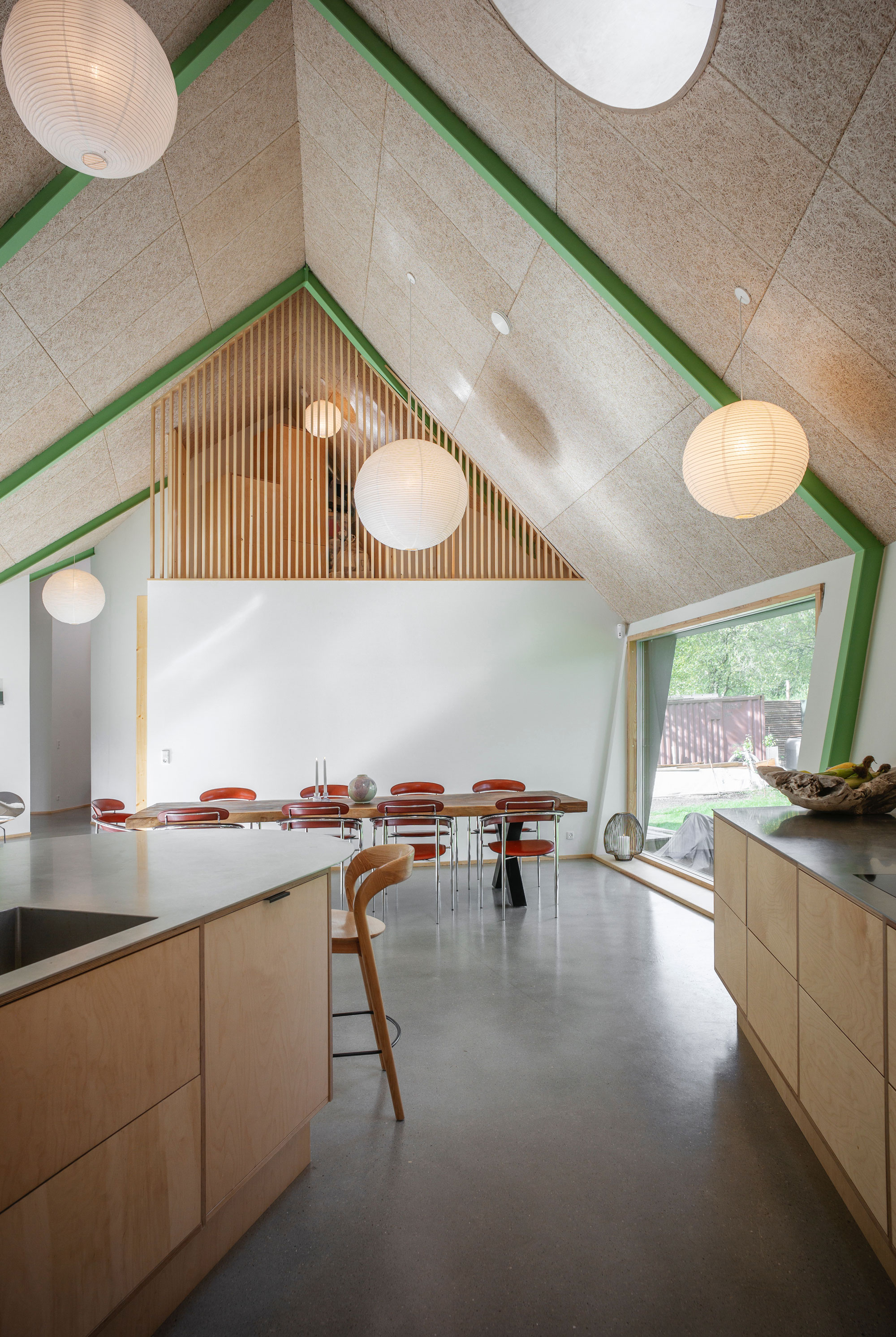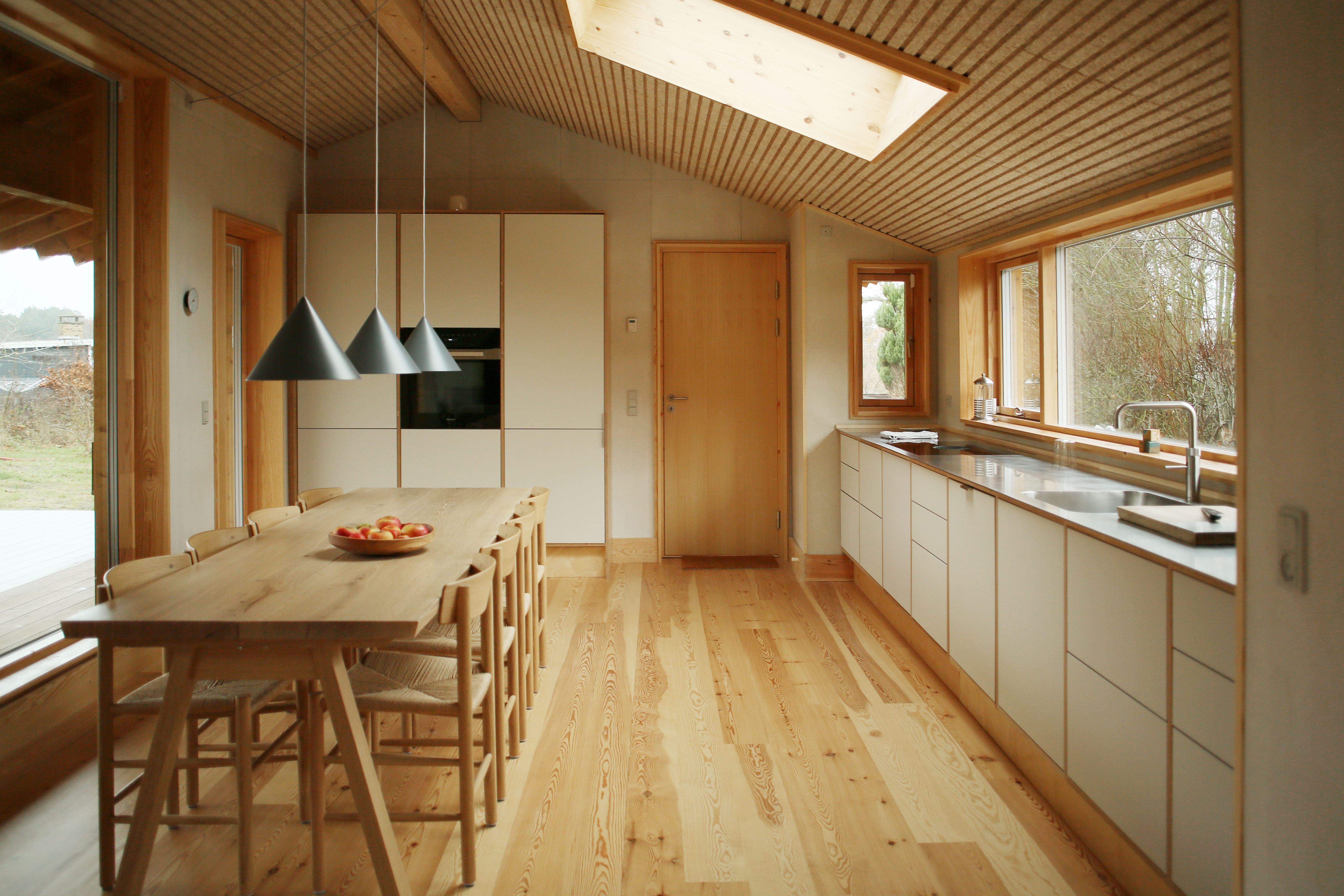Built with upcycled materials and wood fiber insulation, the home prioritizes a healthy indoor climate and a low carbon footprint.
